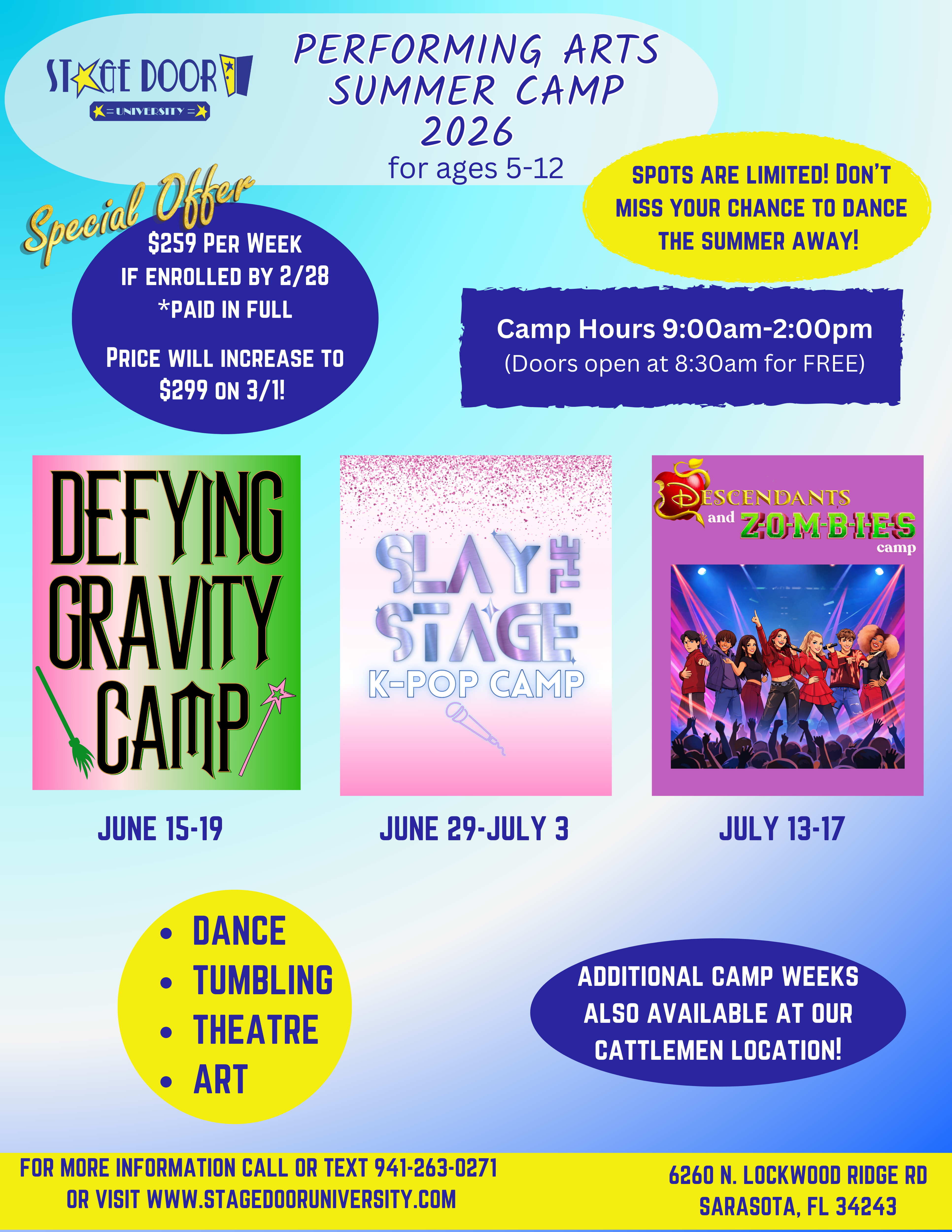 We are so very pleased with Stage Door Studios and their awesome instructors. The facility is beautiful and spacious with plenty of seating for parents/caregivers. There are so many different types of classes offered as well. Their summer camp program is phenomenal and definitely a great value for all the activities they provide. We love the staff and they treat my daughter with such kindness and patience.
